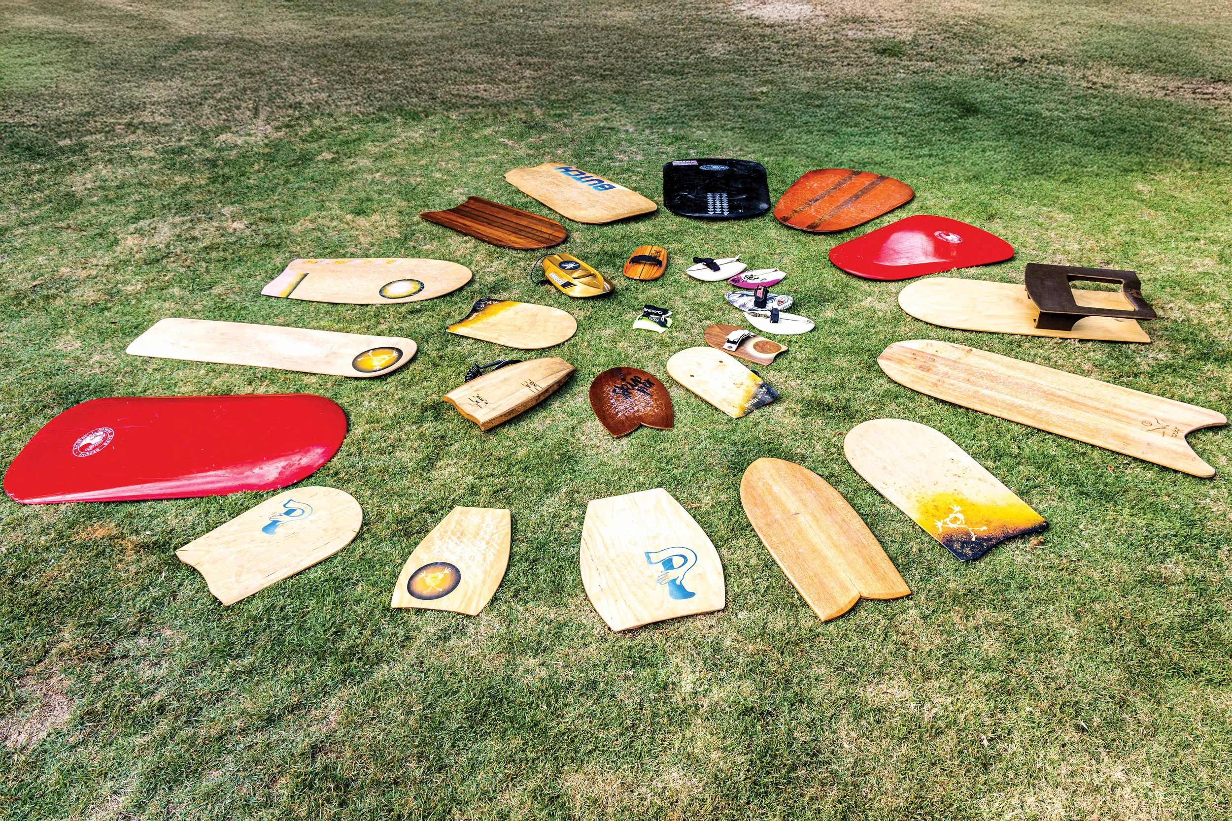 “It was never meant to become a collection,” says Hollenbeck, though he now keeps more than 25 boards at home in Niu Valley. While a regular surfer might have half a dozen boards at home, paipo riders can keep them by the trunkful. They’re small enough to stash everywhere and cheap enough—at least, compared to a thousand-dollar longboard—to justify an extra one for a particular beach or swell.