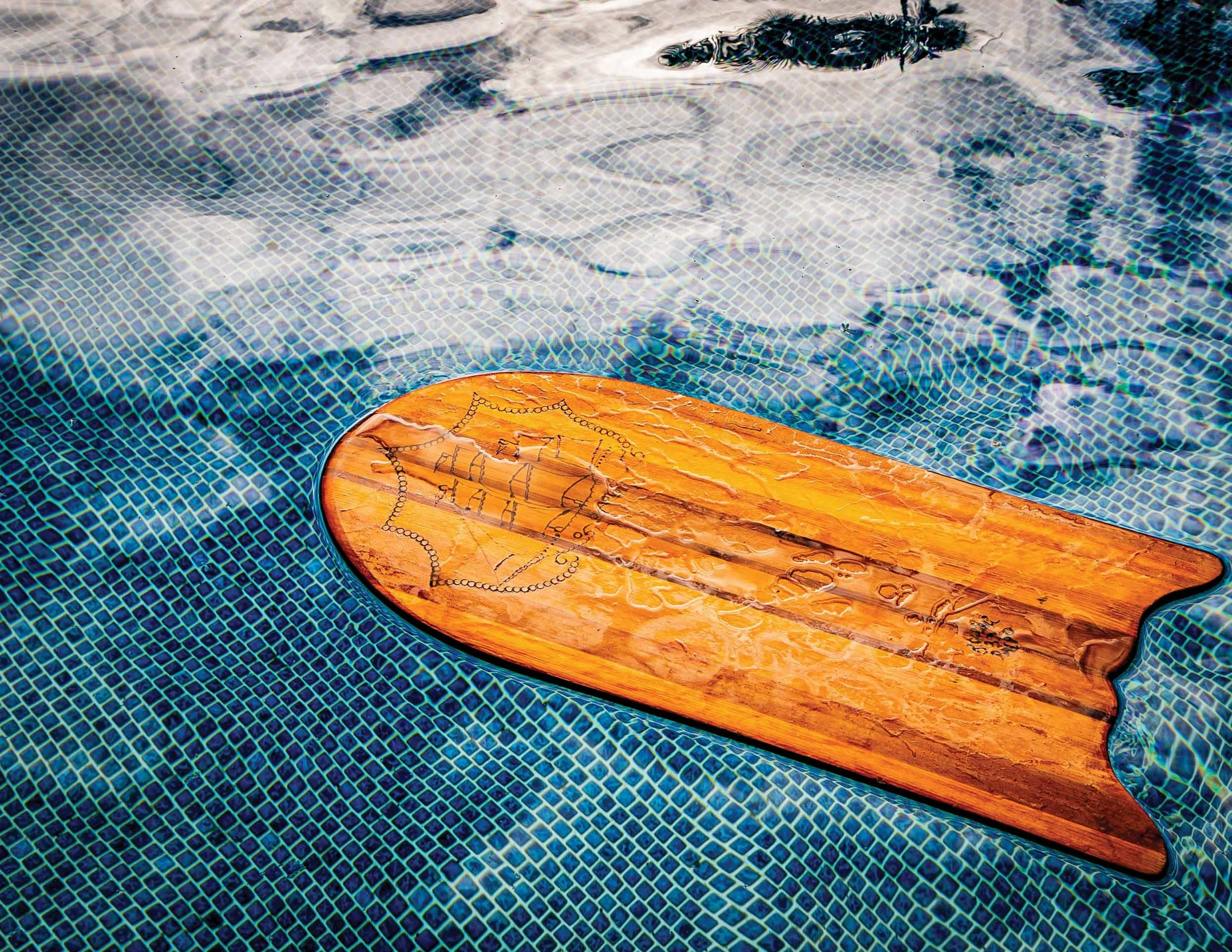 “Different day, different board,” Hollenbeck says. Every one of them has been in the ocean within the past year (save for the bookshelf, now soft with age and too likely to split down the center). Paipo boards have allowed Hollenbeck to catch as high as 20-foot waves at Waimea Bay. The lightweight boards are easier than regular surfboards to paddle out with. Besides, their thin shapes let Hollenbeck duck dive easily and slip under waves if he misses a barrel.