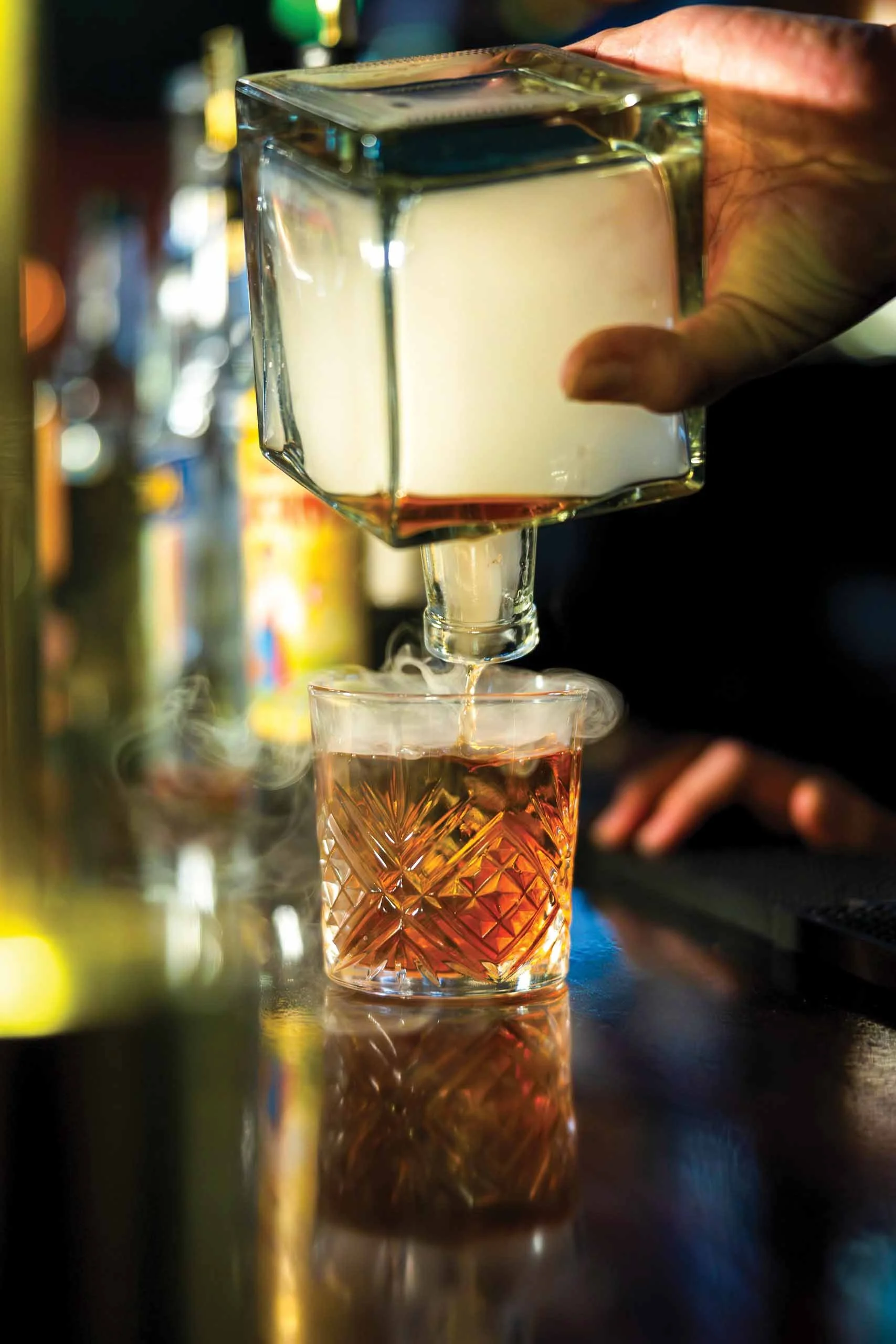 A traditional steakhouse has its classics — cuts of steak, sides and enhancements — but Flair takes this foundation and infuses it with unique sophistication. The restaurant’s art deco interior is striking: bold dark colors, deep jewel tones of midnight-blue velvet seats, lush red drapes, and gold accents. The atmosphere is unexpectedly luxurious, contrasting beautifully with the semi-industrial, modern community outside.