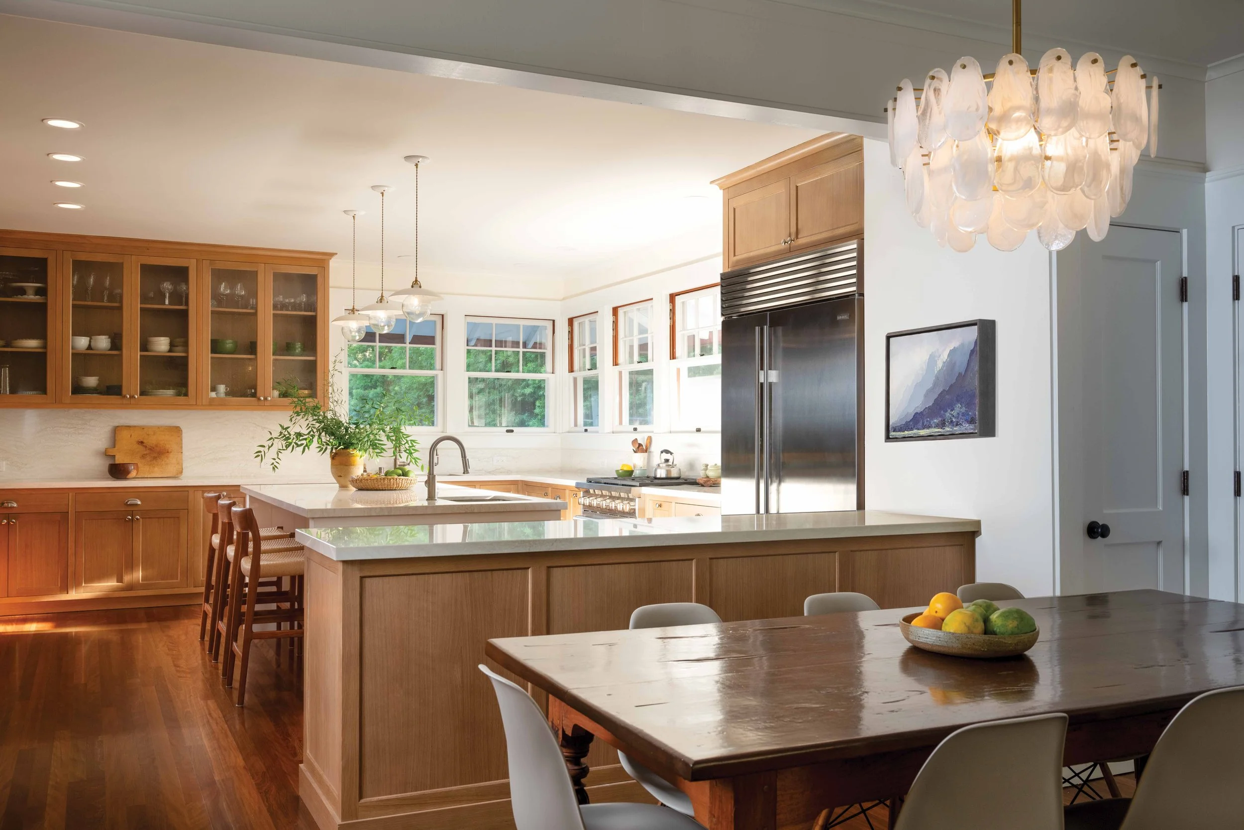 Not a small renovation, as it transformed the open kitchen, adjoining sitting room, two-and-a-half bathrooms, and the homeowners’ bedroom suite. The home had been added on to when the Obanas first moved in, but two decades on, it was time to do a more intensive interior refresh.