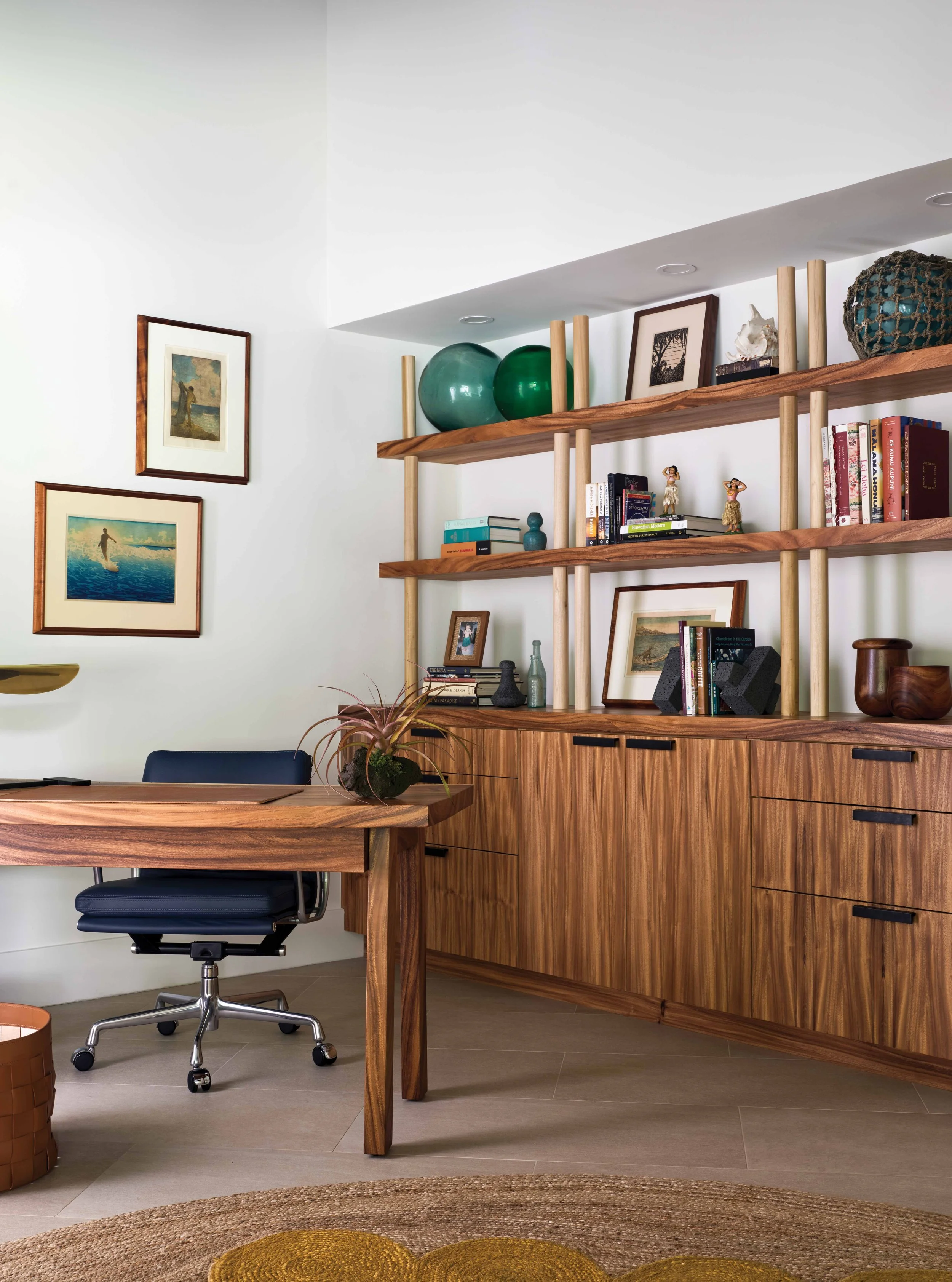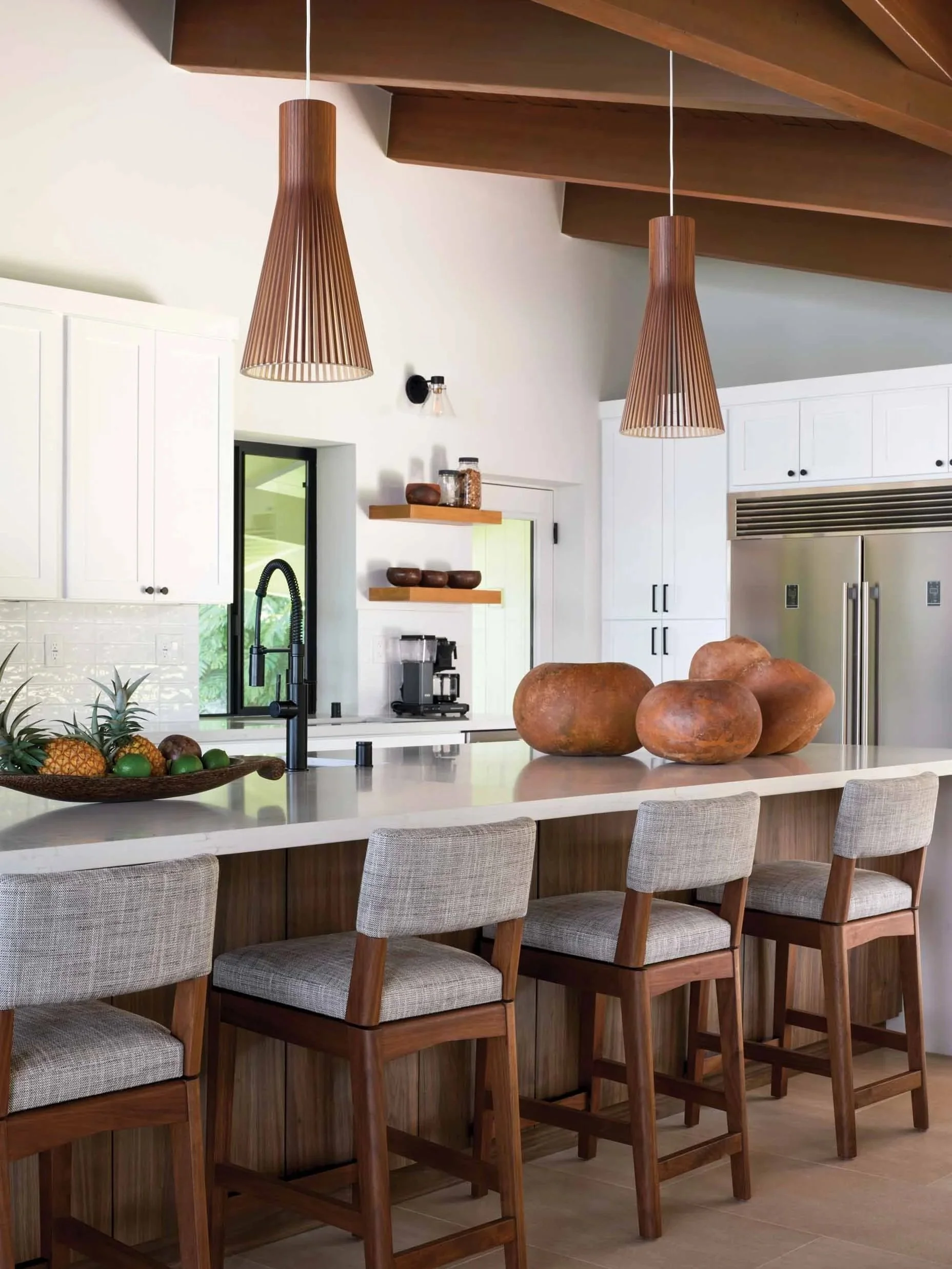 Co-founder and Principal Designer Avery Solmssen and Senior Project Manager Kristin Meehan worked closely with the couple on all aspects of the interior design, from furnishings to space transformations, to surfaces and recommendations on sources for local artwork that matched the owners’ aesthetics and delivered a unique Hawaiian sensibility.